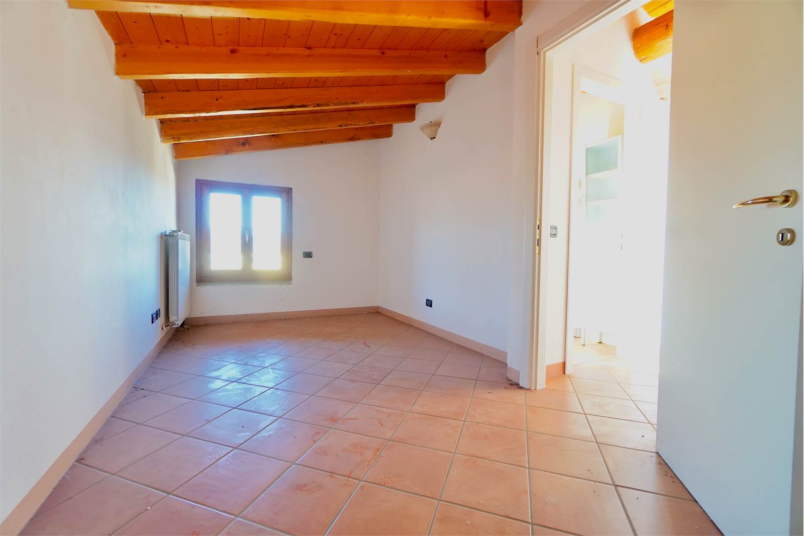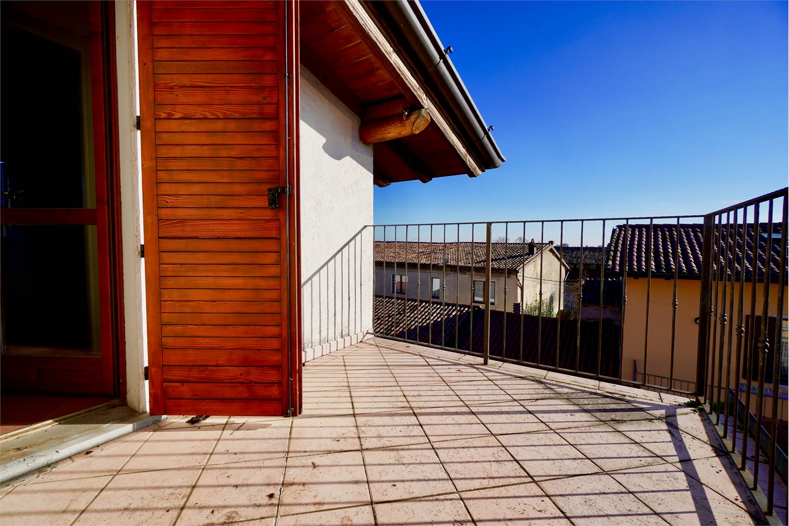 Gli ambienti sono valorizzati dalla presenza di travi a vista, tipiche dello stile della Franciacorta, che donano calore e carattere all’abitazione.