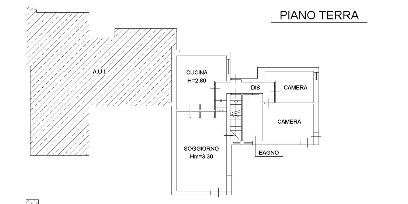 Al piano terra troviamo soggiorno con doppio accesso al giardino, cucina abitabile, disimpegno, due camere da letto, di cui una matrimoniale e una singola, e bagno.