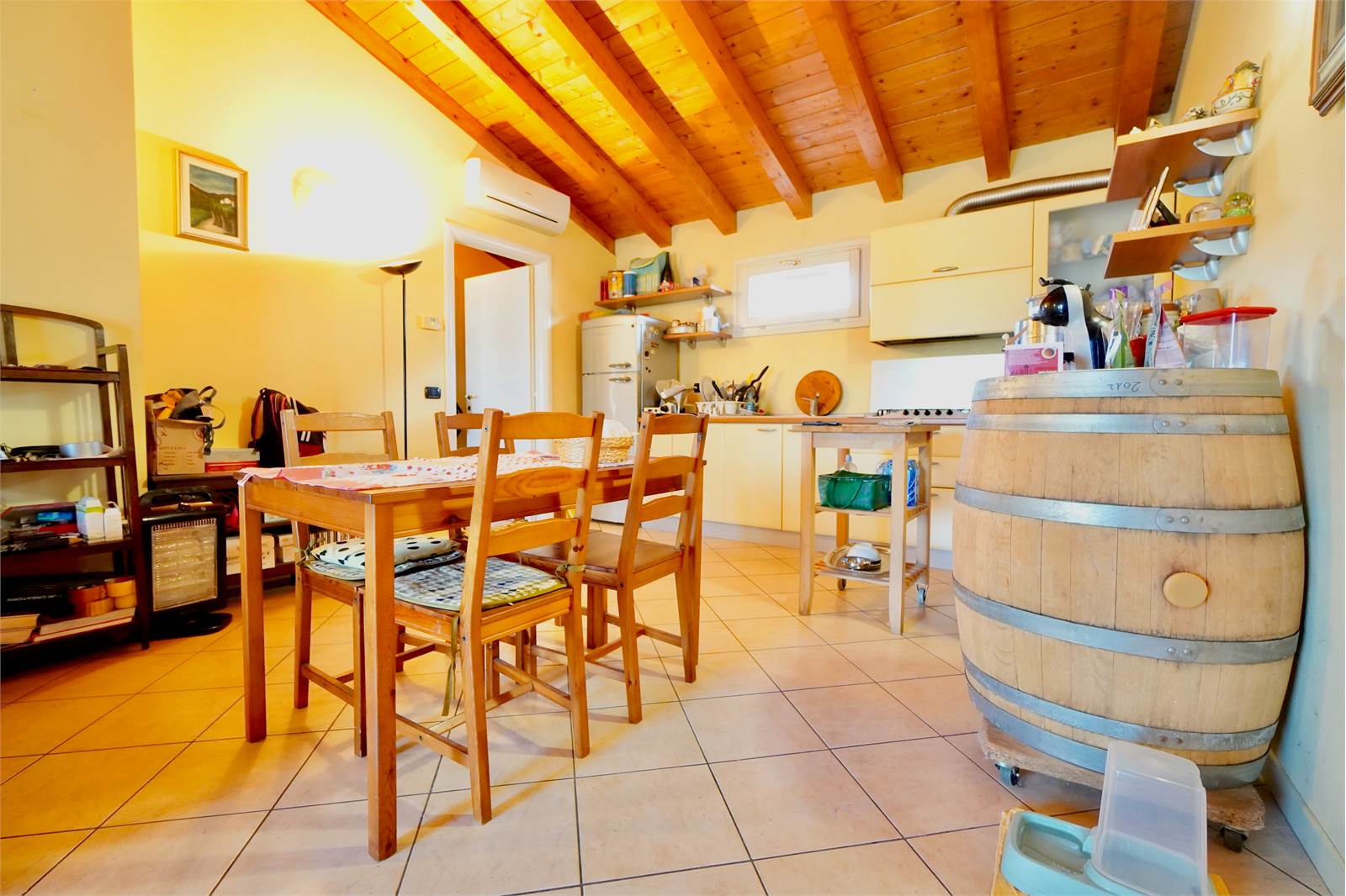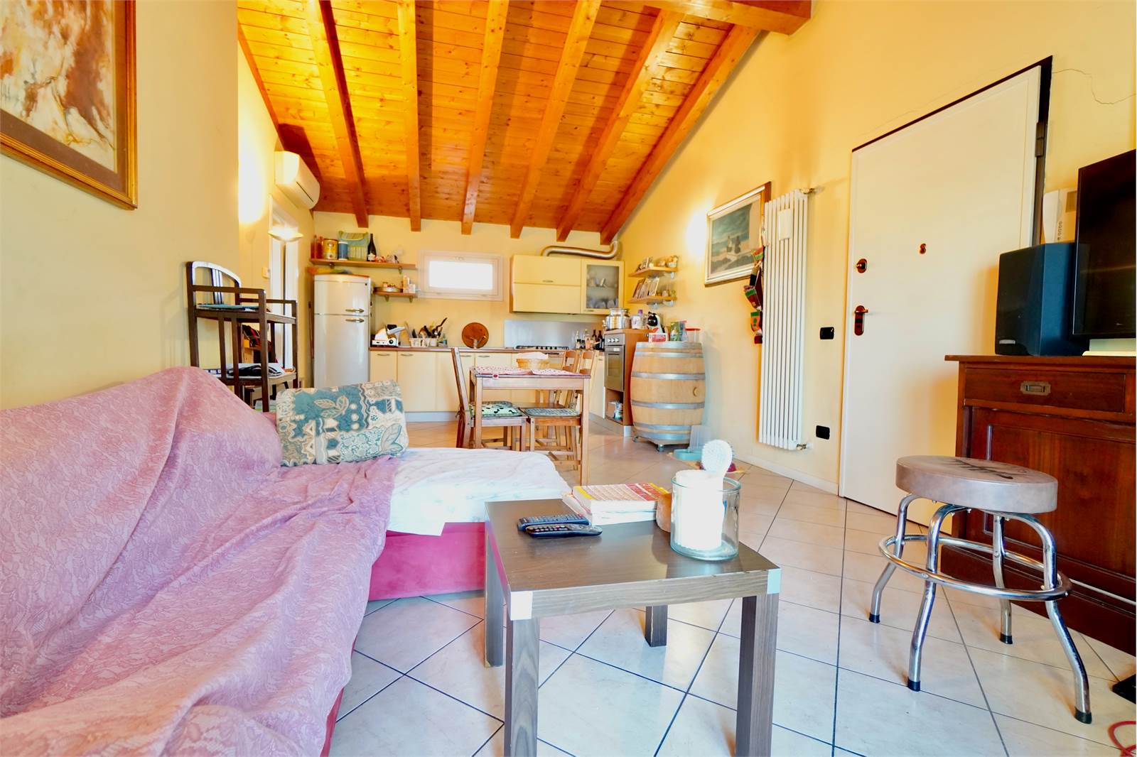 L'immobile è composto da soggiorno con angolo cottura caratterizzato da travi a vista, disimpegno, camera matrimoniale, bagno e balcone.