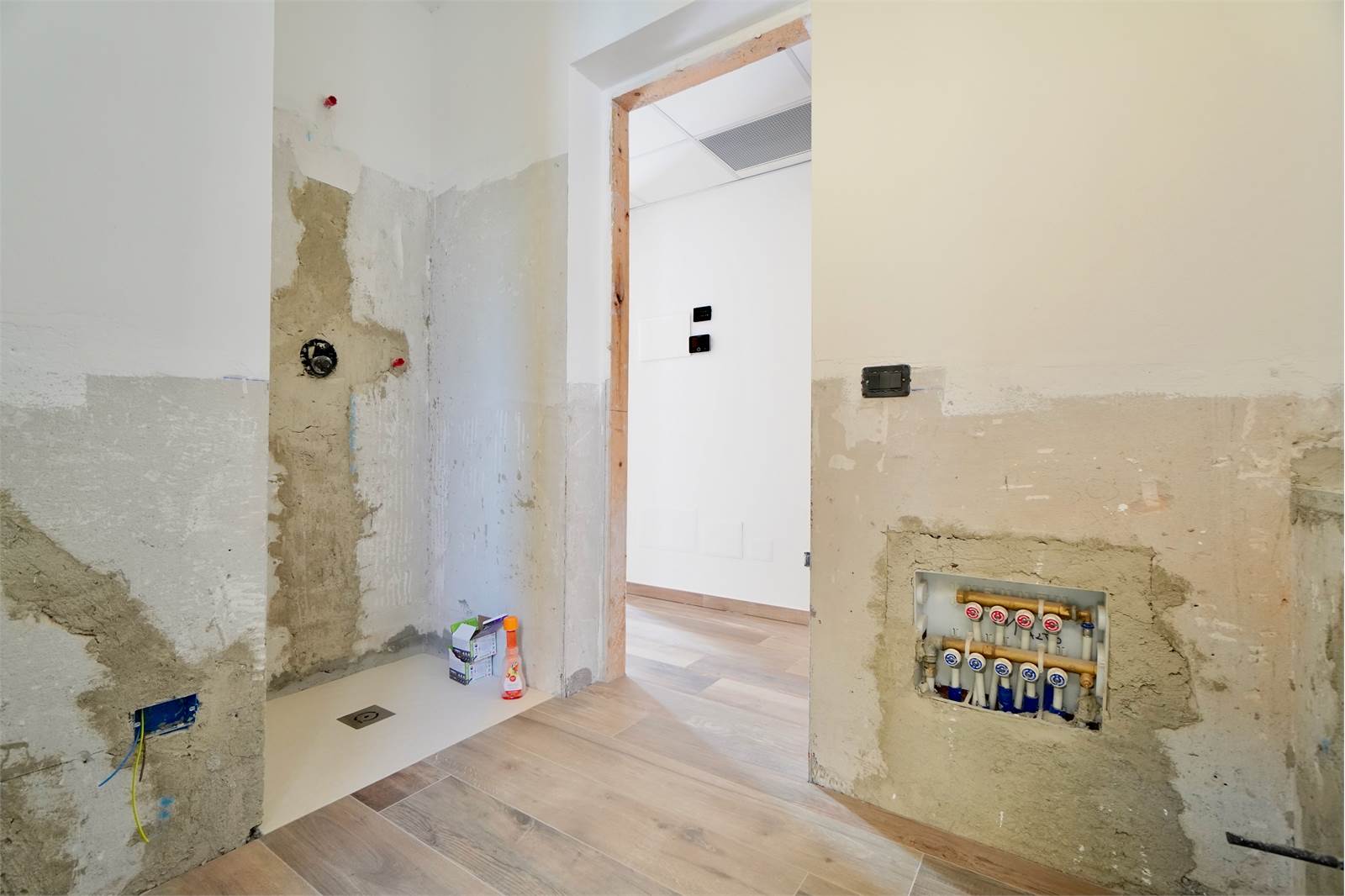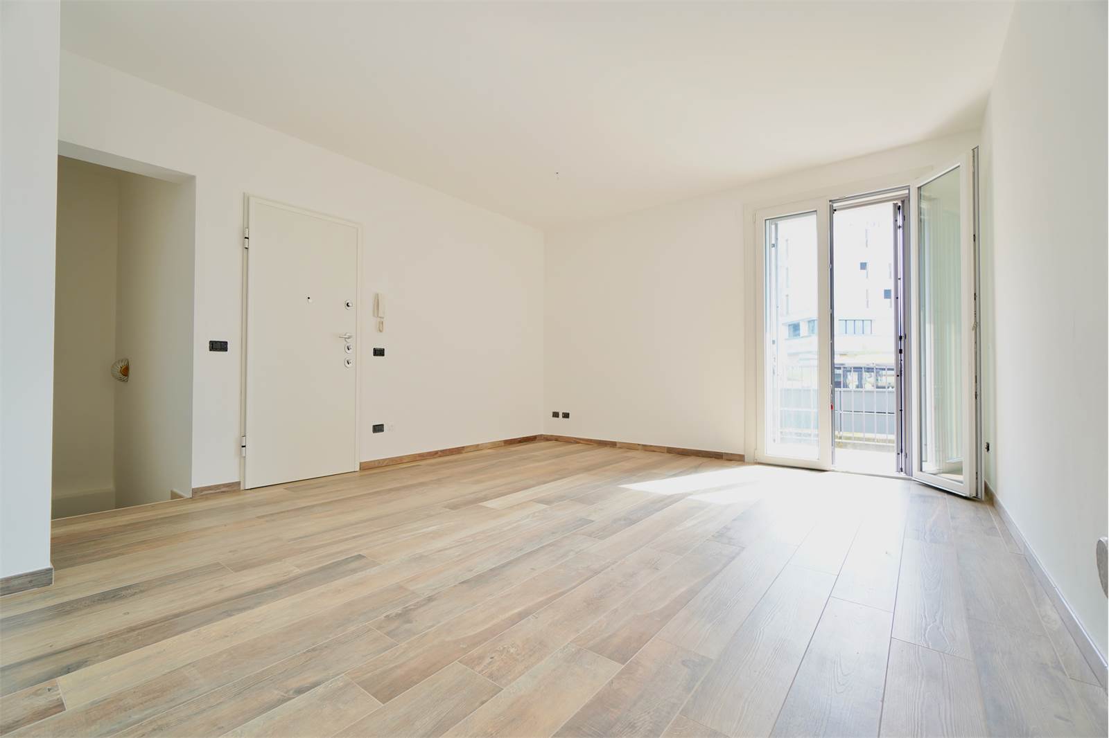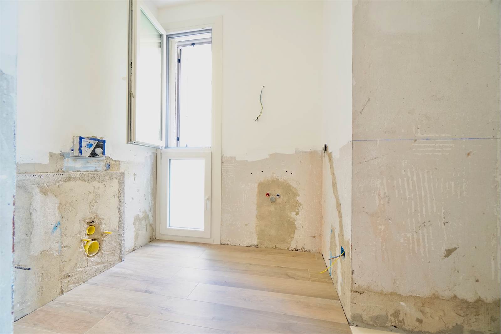 L'immobile è composto da soggiorno, angolo cottura, due camere da letto, disimpegno, bagno, due balconi, al piano seminterrato dal quale si accede direttamente dall’abitazione, troviamo una seconda zona living con accesso diretto sulla corte esclusiva, oltre a una lavanderia e secondo