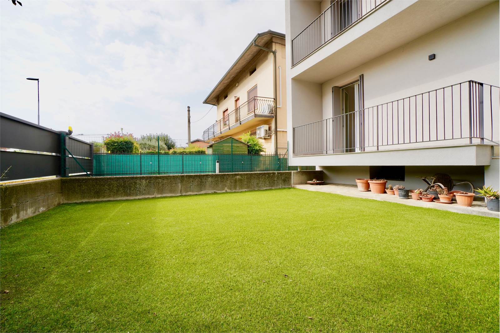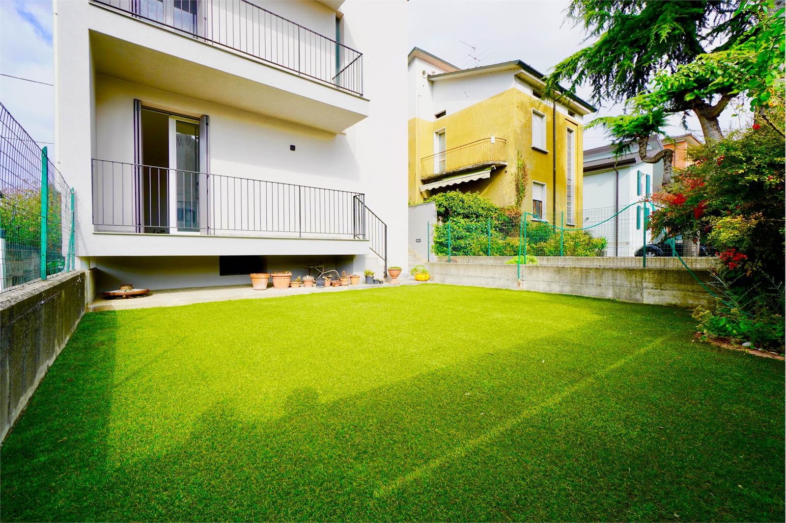 L’immobile è completo anche di giardino sintetico frontale dal soggiorno e due posti auto.