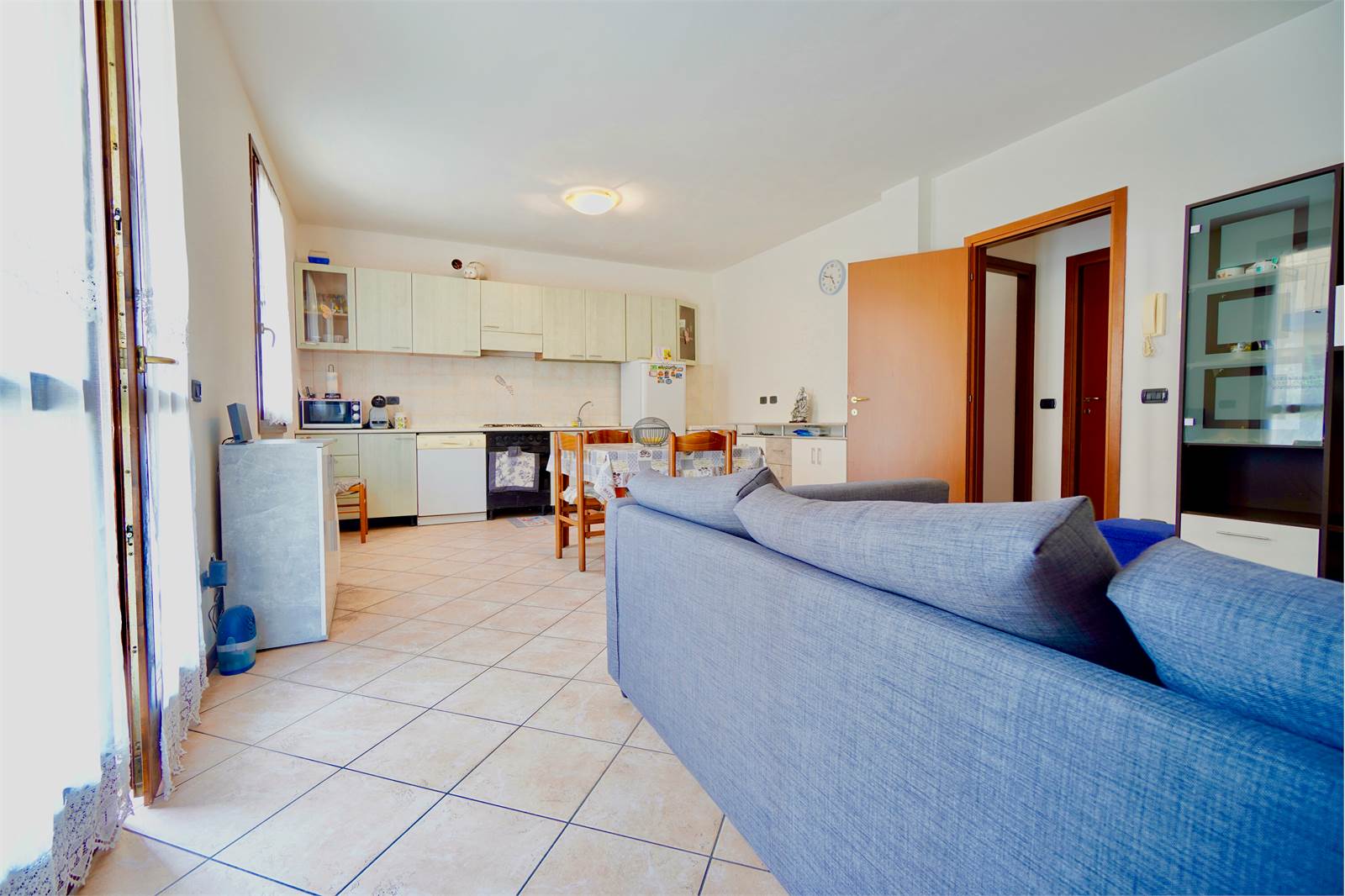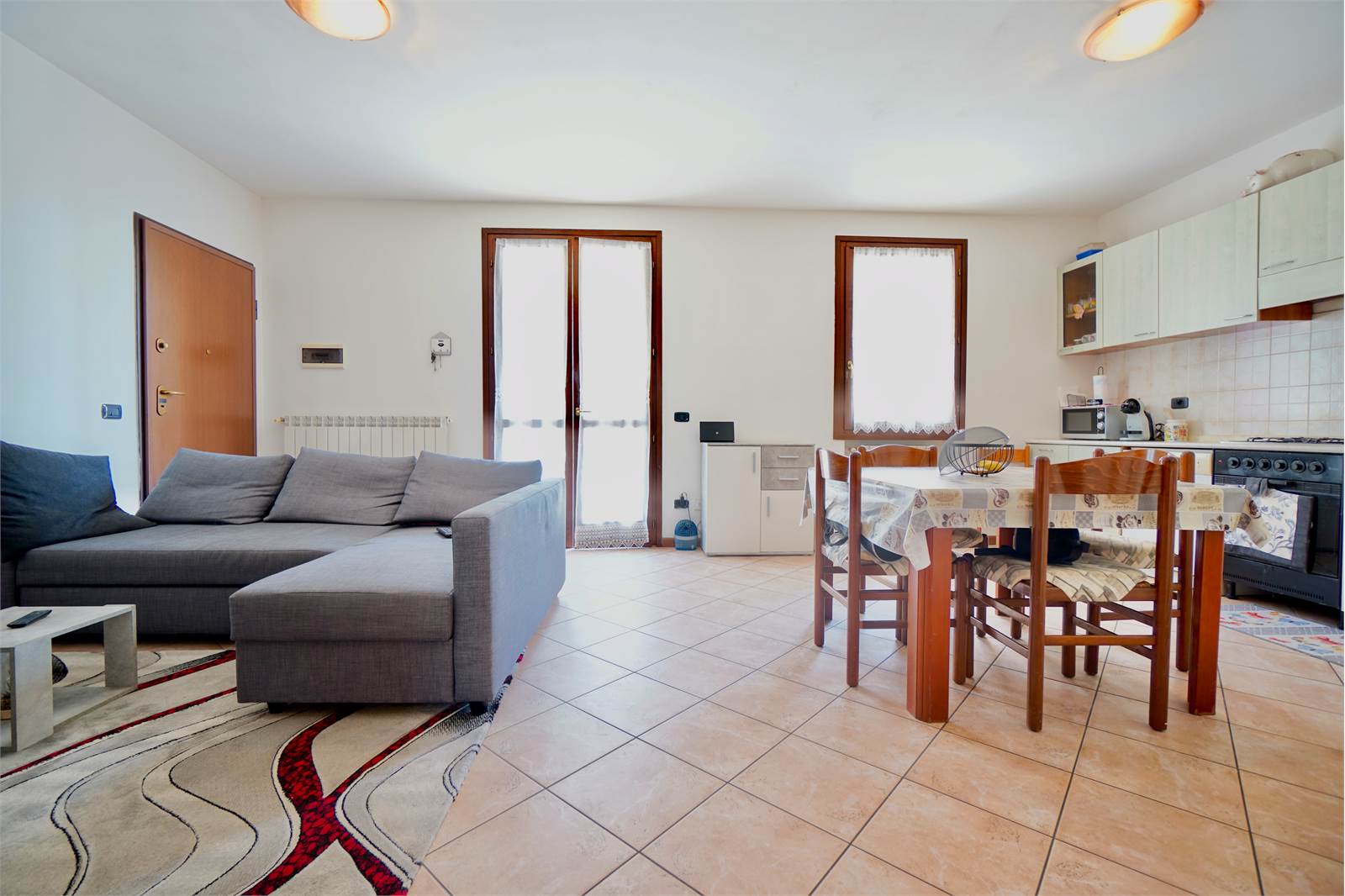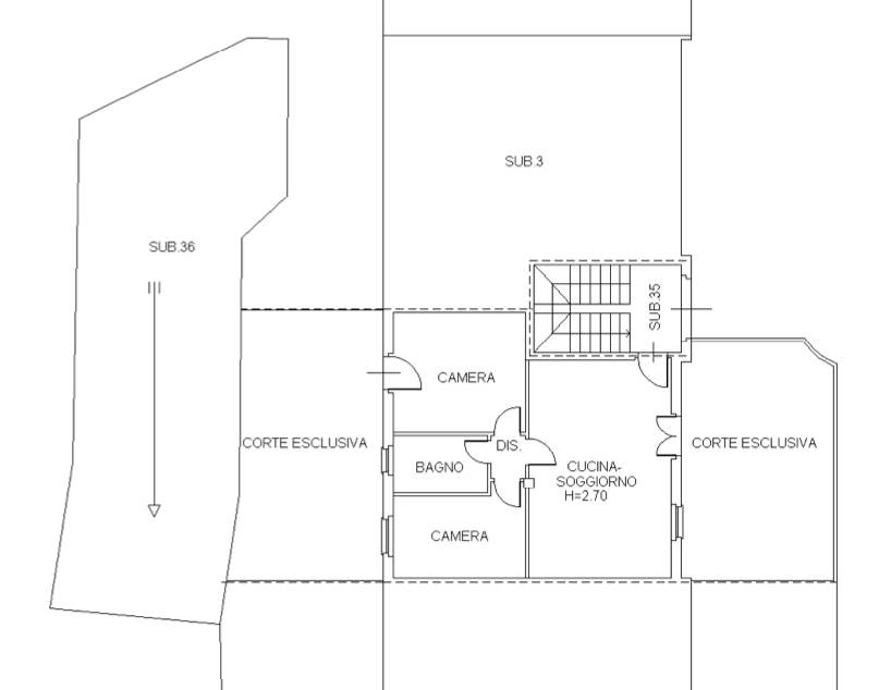 L’abitazione è composta da un soggiorno con angolo cottura, due camere da letto, disimpegno e bagno.