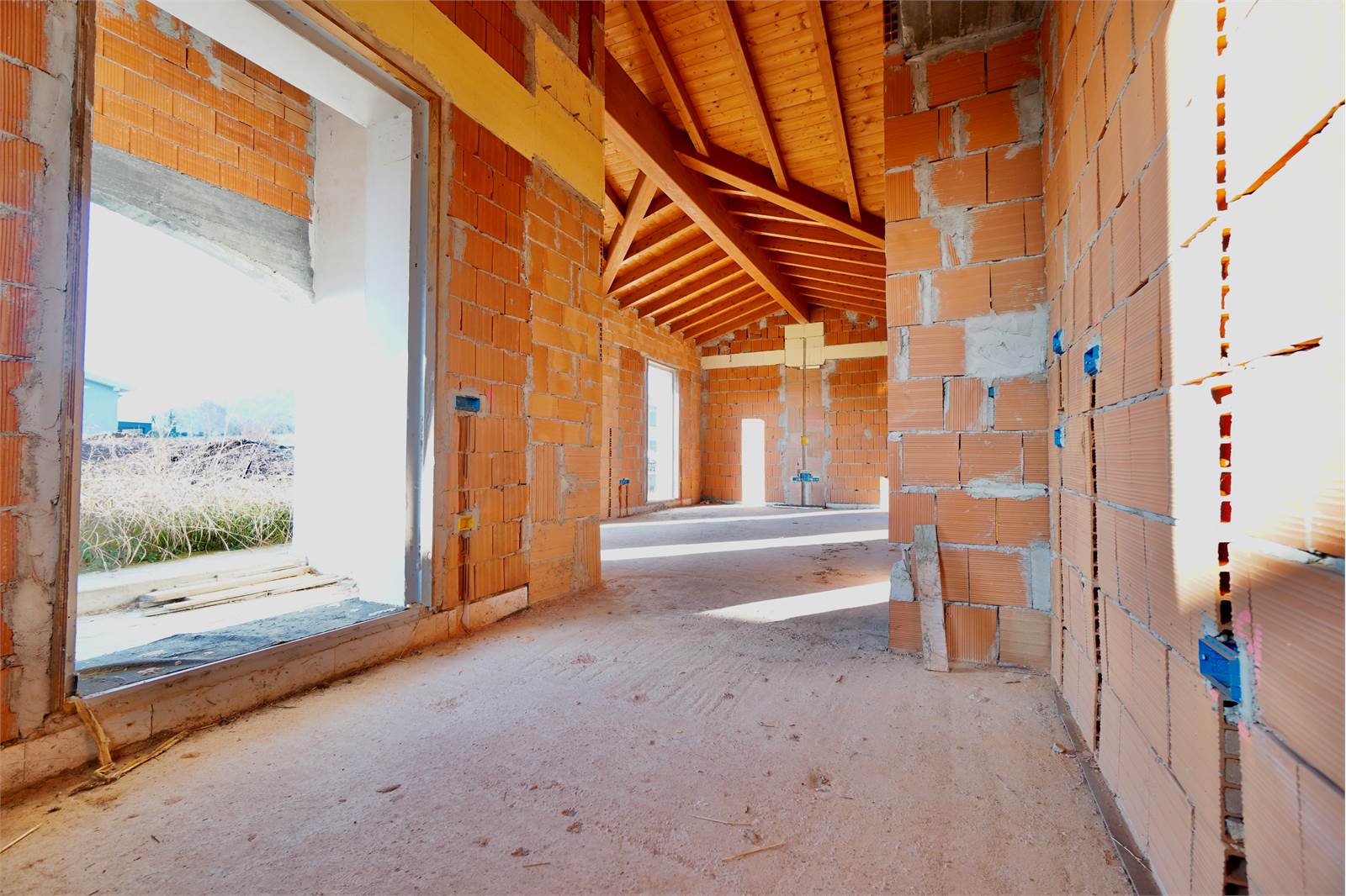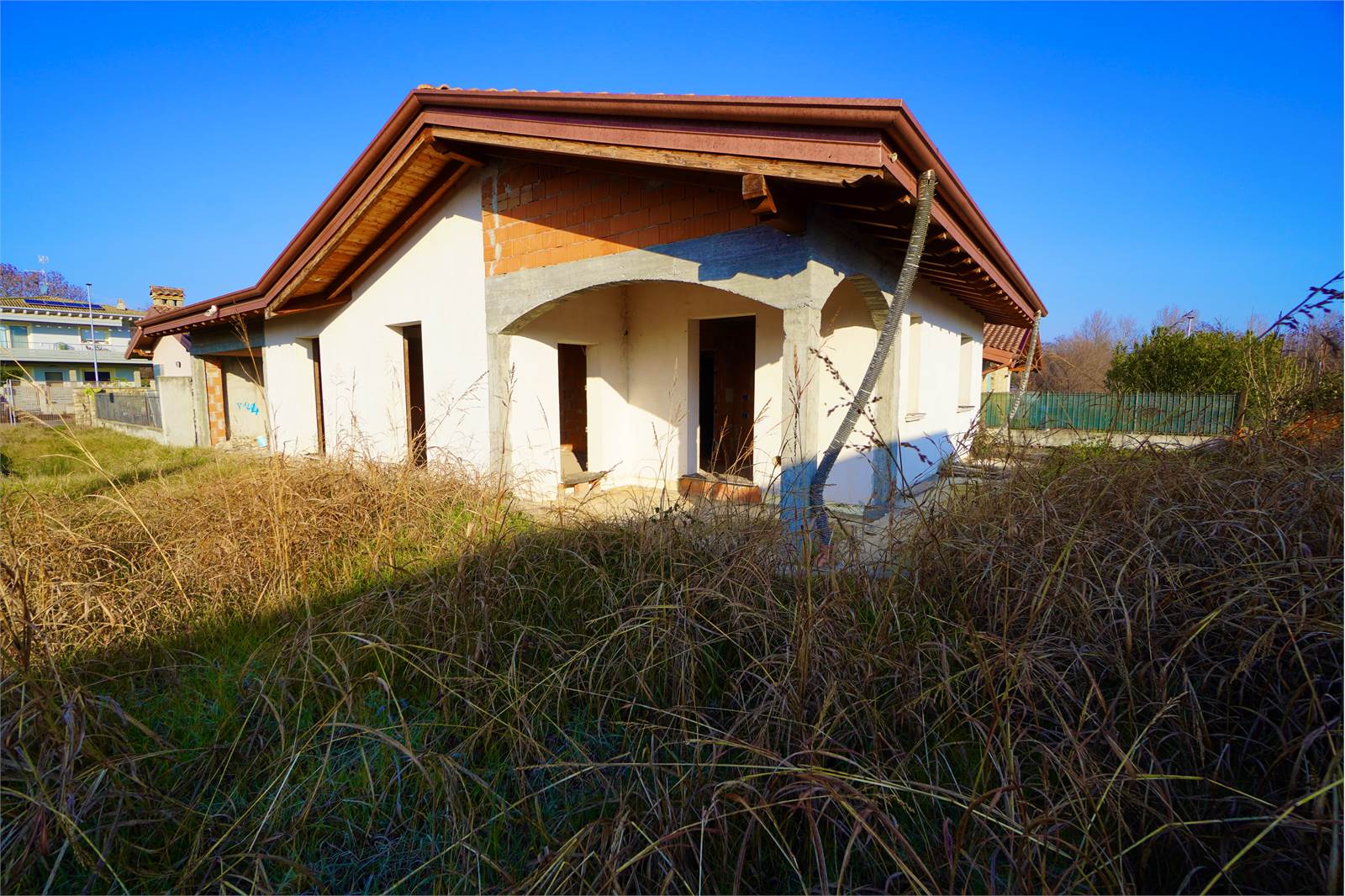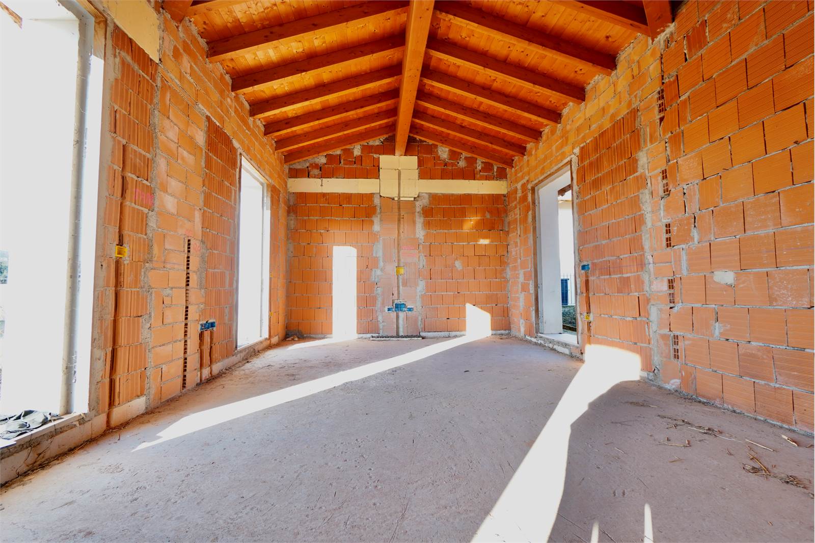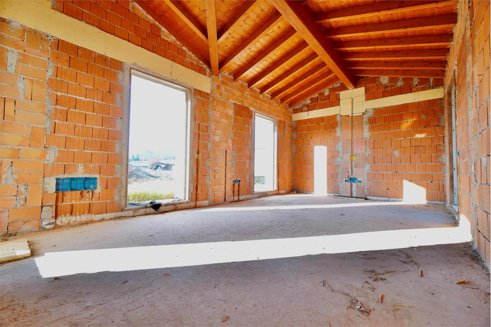 Proponiamo in vendita questa villetta di testa in complesso trifamiliare, composta da soggiorno con travi a vista, cucina a vista, due camere matrimoniali,un bagno ampio e lavanderia.